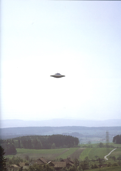 Left: This is photo 49 out of 1476 photographs in total taken by <Billy> Eduard Albert Meier at Berg / Rumlikon, Switzerland on the 14 June 1976. It is a Pleiadian/Plejaran space craft 7 meter or 23 feet in diameter. The craft is being piloted by Semjase and she is doing a demonstration flight.